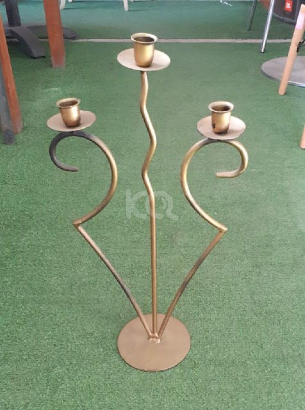 Κηροπήγιο, σε χρώμα χρυσό, με 3 θέσεις για κερί. Σε καλή κατάσταση. Η τιμή δεν περιλαμβάνει ΦΠΑ 24% και μεταφορικά.