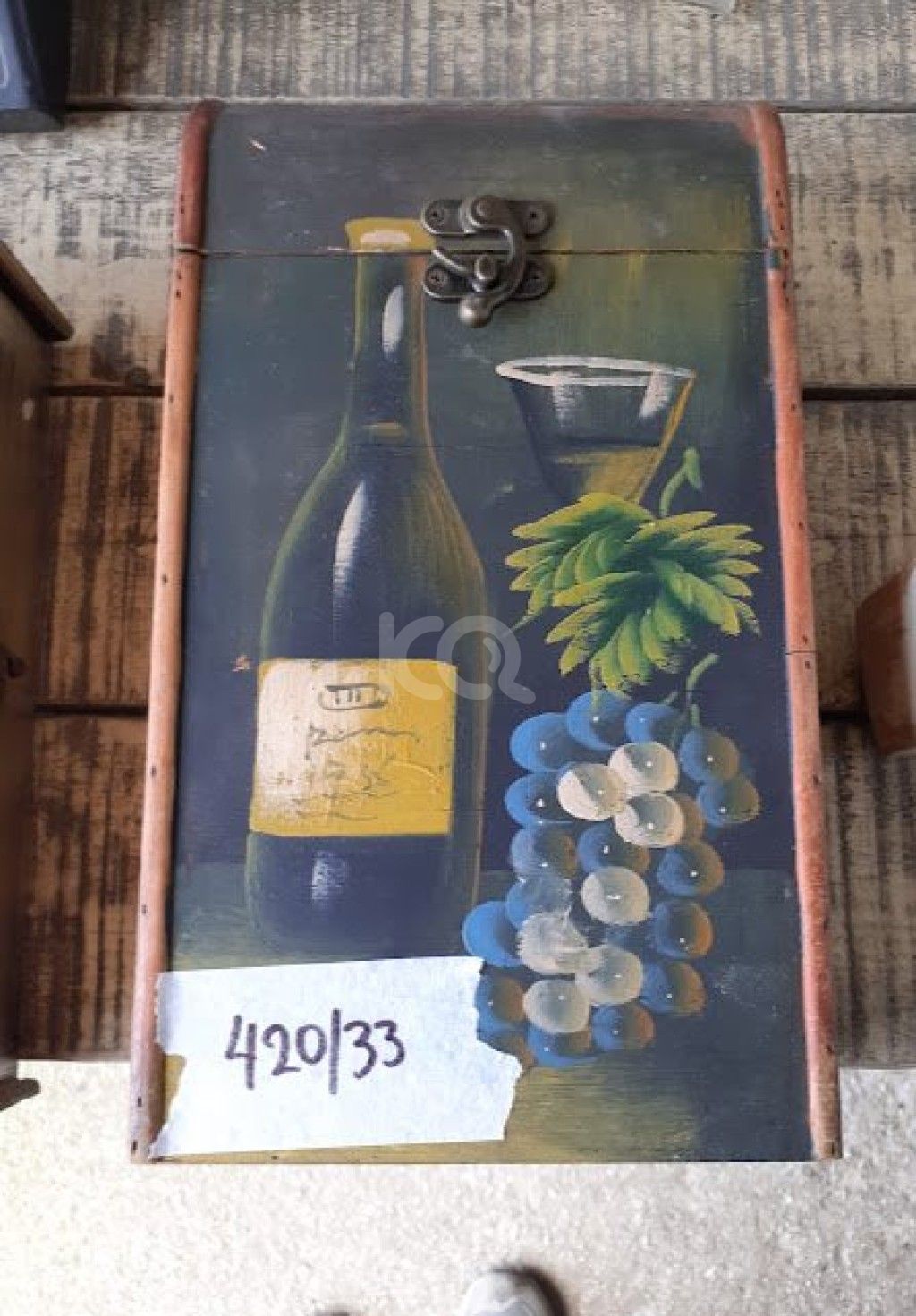 Μεταχειρισμένο, διακοσμητικό, ξύλινο κουτί - μπουκαλοθήκη. Σε καλή κατάσταση. Διαστάσεις: 20x11x35εκ. Η τιμή δεν περιλαμβάνει ΦΠΑ 24% και μεταφορικά.