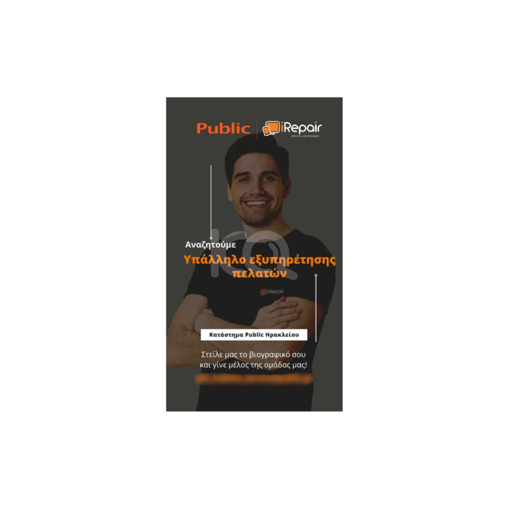 Η iRepair αναζητά άτομο για εξυπηρέτηση πελατών για την στελέχωση του καταστήματος iRepair / Public Ηράκλειο.