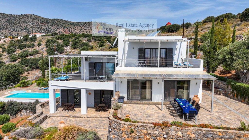 Λασίθι, πωλείται πολυτελής βίλα 243 τμ σε οικόπεδο 2.048 τμ με μαγευτική θέα στον κόλπο της Ελούντας . Συγκεκριμένα προσφέρει πέντε άνετα επιπλωμένα υπνοδωμάτια με τα δικά τους μπάνια. Στον ισόγειο όροφο διαμορφώνεται ένας ο ενιαίος χώρο με σαλόνι με τζάκι , τραπεζαρία και κουζίνα η οποία είναι πλήρως εξοπλισμένη και η κεντρική βεράντα με εξωτερική τραπεζαρία . Στη συνέχεια βρίσκεται η κύρια βεράντα της βίλας με την πισίνα που διαθέτει υπερχείλιση και η οποία είναι 43 τμ , παιδική πισίνα , πέργκολα με εξωτερική τραπεζαρία και μικρή τουαλέτα και στη συνέχεια υπαίθριος χώρος με μοναδική ανεμπόδιστη θέα τον κόλπο του Μιραμπέλου και την θάλασσα.