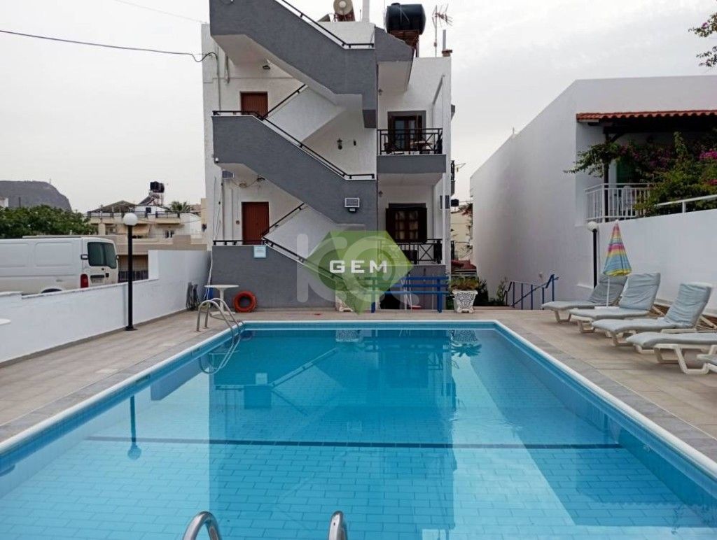 Χερσόνησος, Ανάληψη: Πωλείται μερικώς ανακαινισμένο Ξενοδοχείο 900τ.μ. σε 1200τ.μ. οικόπεδο σε ισόγειο που αποτελείτε από 3 κτίρια με φωτοβολταικά στην ταράτσα. Αποτελείται από 17 ενοικιαζόμενα δωμάτια, 12 δίχωρα και 5 μονόχωρα, κήπο με 25αρα πισίνα και παιδική, 2 καταστήματα και 1 bar. Είναι κατασκευασμένο το 1987, βαμμένο και διαθέτει κλιματισμό, ενεργειακή κλάση Δ, δάπεδα από πλακάκι, ηλιακό θερμοσίφωνα. Το ακίνητο προτείνεται ως επενδυτικό. Τιμή 1.500.000€