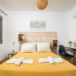 Renovated airy and frontage, furnished and electrically equipped detached house, ground floor 85 sq.m. It has a single living room-kitchen area, 3 bedrooms, 1 bathroom with shower and 1 wc, fireplace, air conditioning, solar water heater, PPC meter, terrace, internet, security door, yard, garden, basement, storage room, parking, unlimited mountain and sea views, semi-outdoor areas, swimming pool. Pets accepted. PEA B. Available for short-term rental only. Rent price 600 euros.