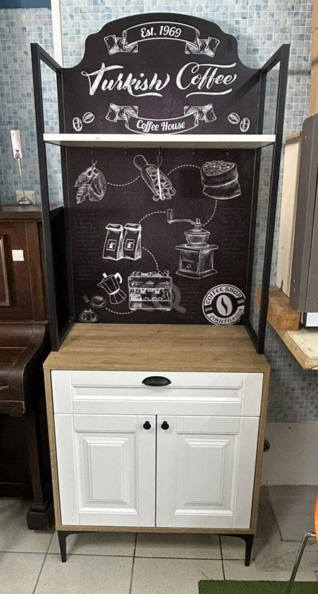 Ολοκαίνουργιος μπουφές από μοριοσανίδα με επένδυση μελαμίνης υψηλής ποιότητας. Είναι σε λευκό και μαύρο χρώμα. Διαθέτει δύο ντουλάπια, συρτάρι, ραφιέρα με μεταλλικά πόδια. Διαστάσεις: 70x40x184.6 εκ, τιμή 210 ευρώ
