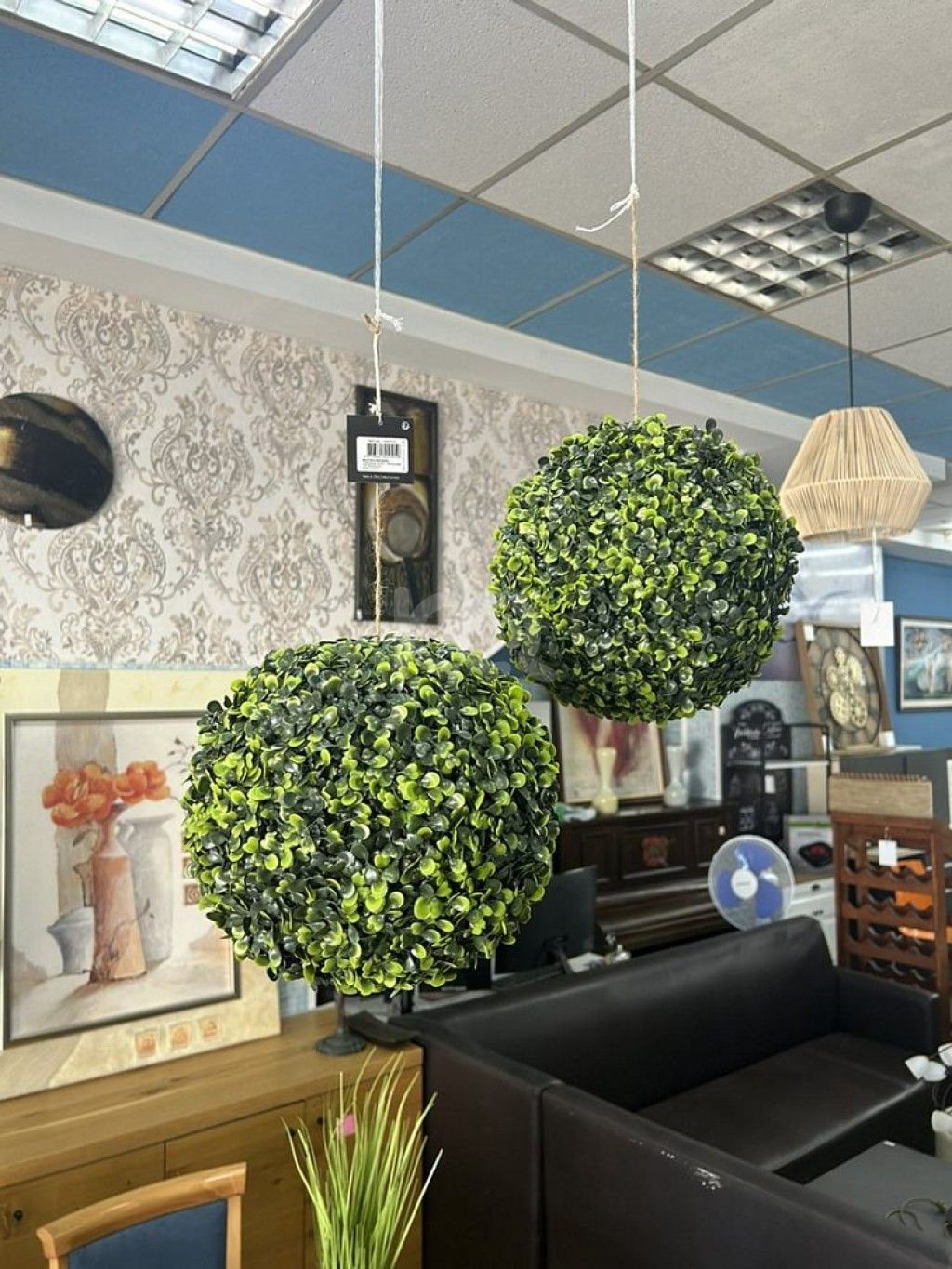 Ολοκαίνουργια πράσινη τεχνητή κρεμαστή σφαίρα πυξάρι με φάρδος 28 εκ, υλικό πολυαιθυλένιο.