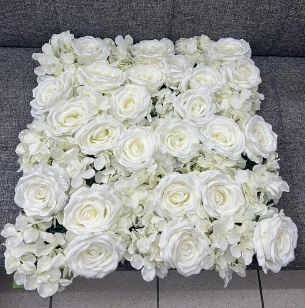 Ολοκαίνουργια τεχνητή φυλλωσιά τριαντάφυλλο σε λευκό χρώμα. Ιδανικό για διακόσμηση τοίχου. Διαστάσεις 50x50 εκ, υλικό πολυαιθυλένιο και υλικό φύλλων οργανικό ύφασμα.