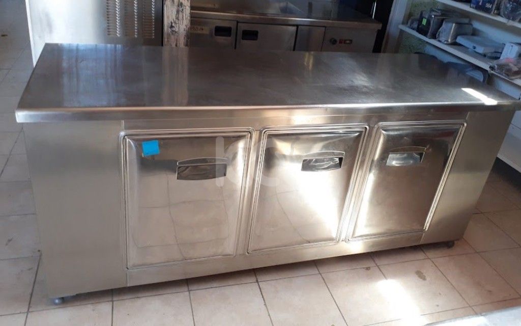 Μεταχειρισμένο ψυγείο πάγκος, ανοξείδωτο, με 3 ανοιγόμενες πόρτες και εξωτερικό μοτέρ. Σε καλή κατάσταση. Διαστάσεις: 200x70x86εκ.Η τιμή δεν περιλαμβάνει ΦΠΑ 24% και μεταφορικά