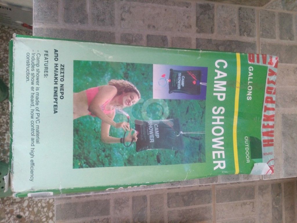 Υπαίθριο ντούς κάμπινγκ διάφανο με βρυσάκι πωλείται στην τιμή των 15 ευρώ.