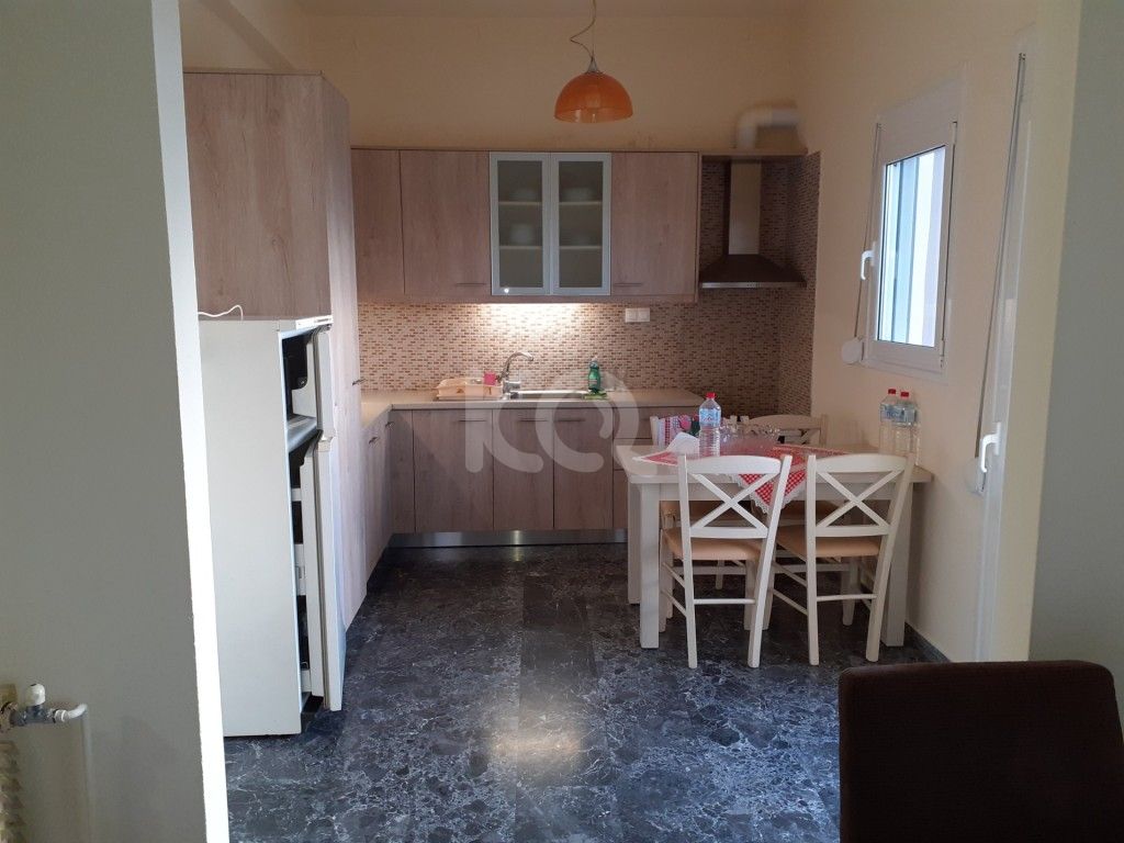 Ανακαινισμένο (2020), προσόψεως, 4αρι οροφοδιαμέρισμα, εμβαδού 105 τ.μ., 1ου ορόφου, σε διπλοκατοικία, με δικό του οικόπεδο 340 τ.μ, με ελιές, διαθέτει, ενιαίο χώρο κουζίνα-σαλόνι-τραπεζαρία, τζάκι, 3 υπνοδωμάτια με μεγάλες καινούριες ντουλάπες, λουτρό με μπανιέρα, αυτόνομη θέρμανση, ηλιακό θερμοσίφωνο, κλιματισμό, 2 αποθήκες, βεράντες, κουφώματα αλουμινίου, σίτες, σε ήσυχη γειτονιά, με θέα βουνό και θάλασσα. Έτος κατασκευής 1974. Π.Ε.Α= Κατηγορία Ζ. Τιμή 160.000 €.