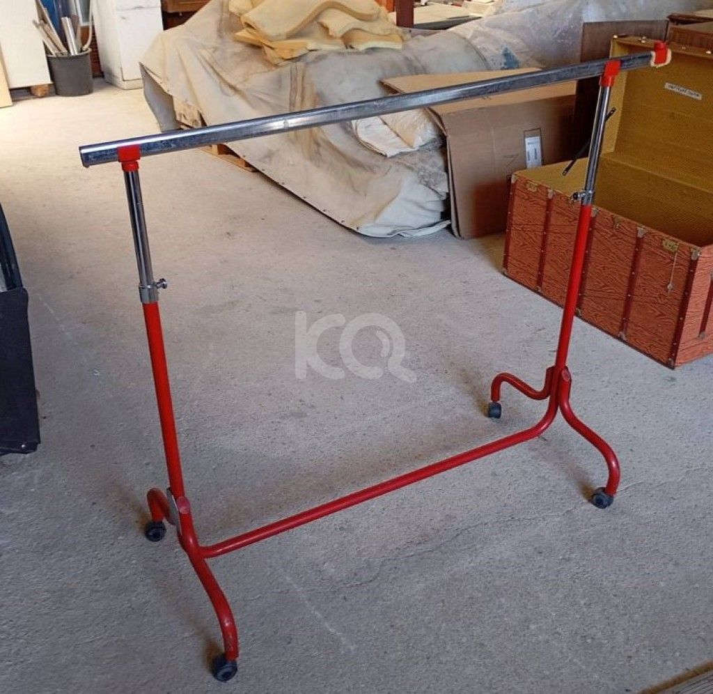 Μεταχειρισμένη, τροχήλατη κρεμάστρα αλουμινίου, κόκκινο χρώμα. Σε καλή κατάσταση. Διαστάσεις: 150x127εκ. Η τιμή δεν περιλαμβάνει φπα 24% και μεταφορικά