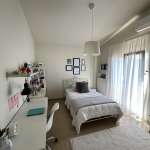 Στο πάνω επίπεδο υπάρχουν τρία υπνοδωμάτια, το ένα με βεστιάριο, ένα μπάνιο και ένας βοηθητικός χώρος που βρίσκεται το πλυντήριο και το στεγνωτήριο. Περιμετρικά υπάρχουν μπαλκόνια και βεράντες σε όλους τους χώρους και τα δωμάτια. Σκεπή με μπετόν, κεκλιμένη και από πάνω κεραμίδι. Ανατολικά υπάρχει ένας όμορφος λυτός και περιποιημένος κήπος 30τ.μ.