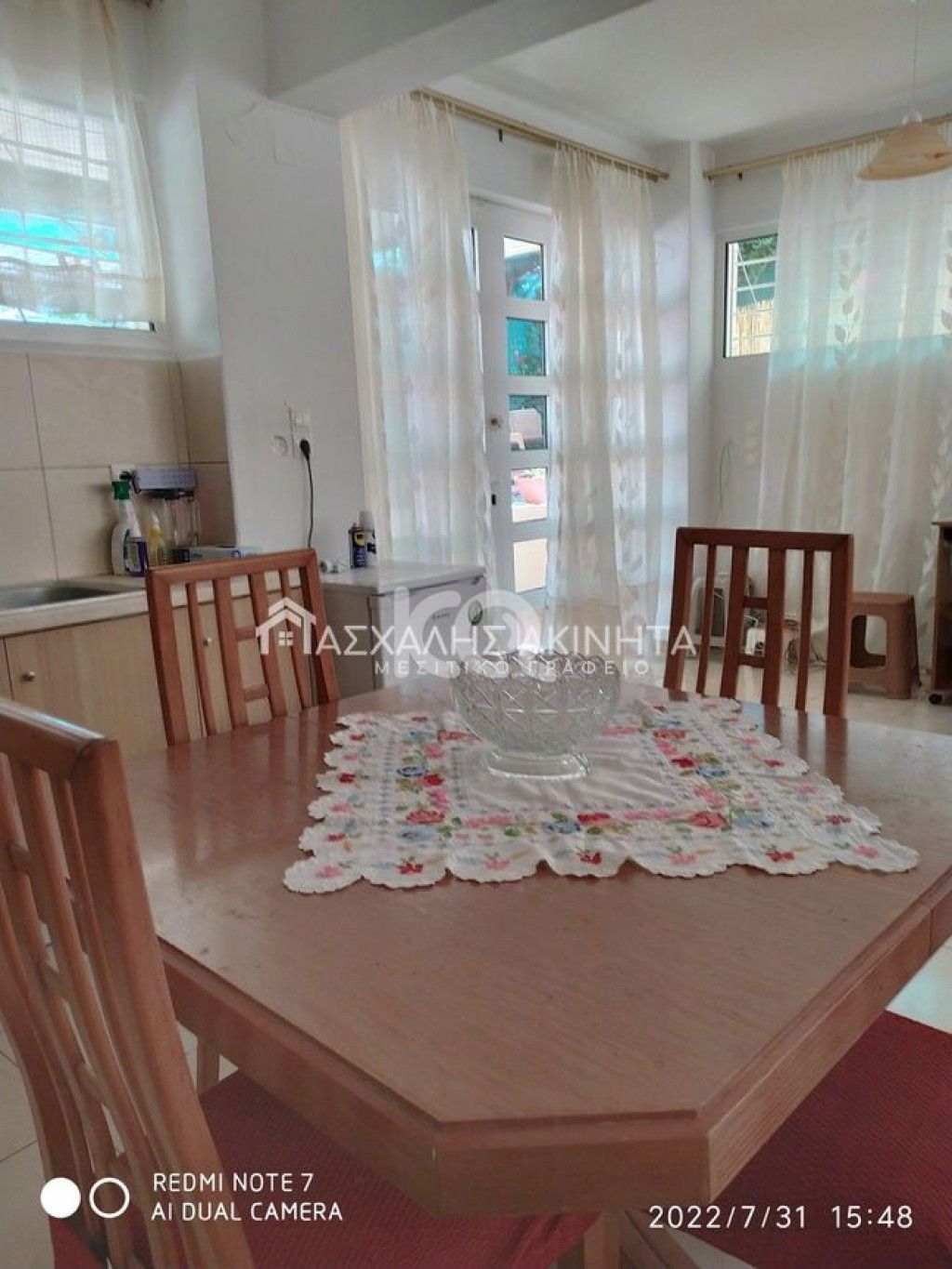 Furnished and electrically equipped 3-room ground floor apartment of 90 sq.m. with independent entrance. It has a single living room-kitchen area, 2 bedrooms, 1 bathroom with shower, independent heating, air conditioning, internet, insulation, aluminum frames, solar water heater, double glazing, screens, PPC meter, garden, parking, without utilities. No pets. Only given for short-term rental. PEA E. Rent price 680 euros.