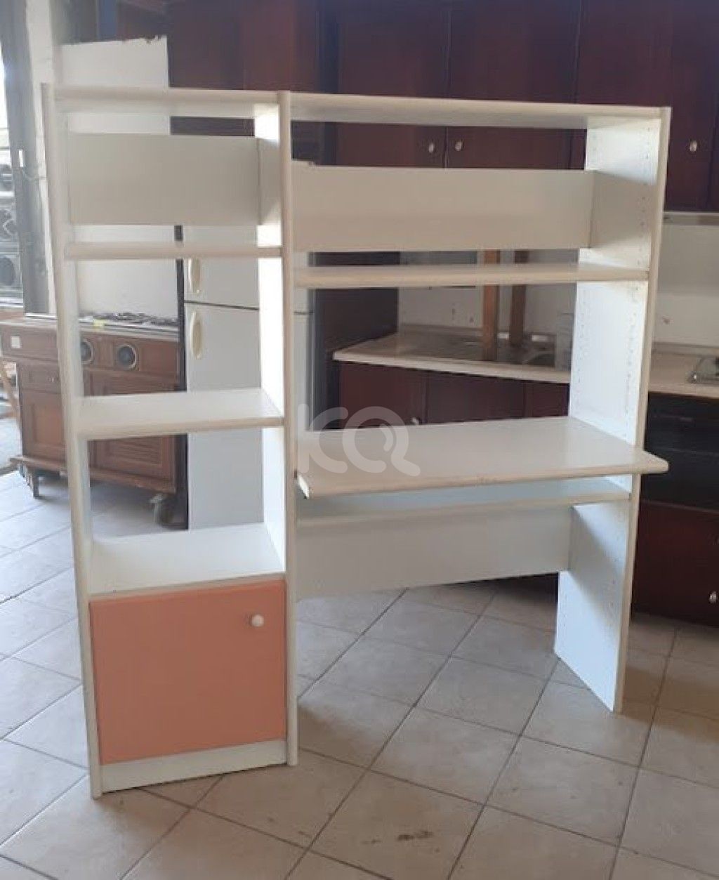 Μεταχειρισμένο γραφείο ξύλινο, με ραφιέρα και ένα ντουλάπι, σε λευκό χρώμα. Σε καλή κατάσταση. Διαστάσεις: 140x50x160εκ. Η τιμή δεν περιλαμβάνει φπα 24% και μεταφορικά