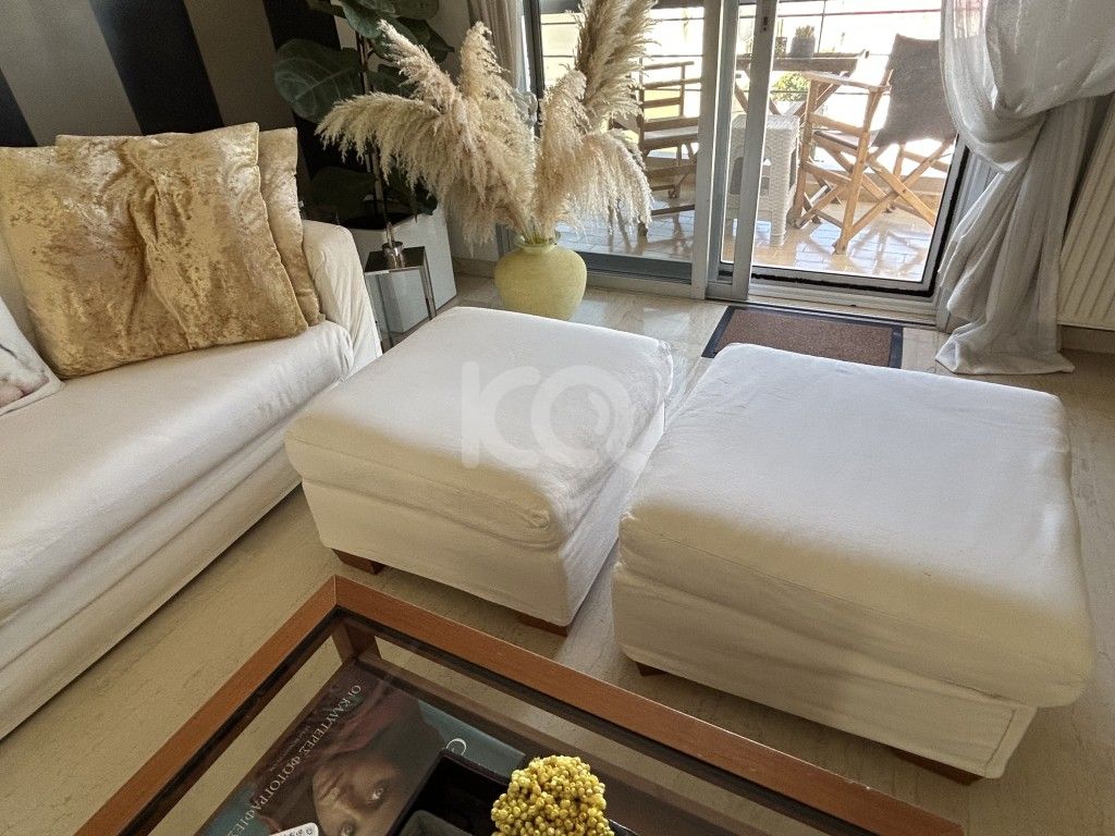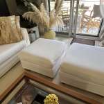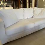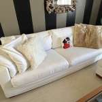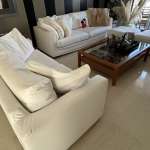 Σετ καναπέδων 3θέσιος, 2θέσιος και 2 πούφ με λευκή στόφα και ξύλινα πόδια καρυδιάς, αγορασμένοι από την επώνυμη εταιρεία " Casa di Pazzi". Είναι σε πολύ καλή κατάσταση και βρίσκονται σε όροφο.