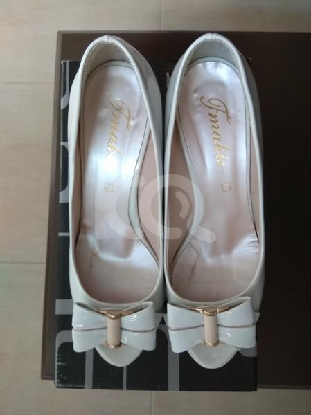 λευκές, δερμάτινες, νούμερο 38, ύψος τακουνιού 8 εκ.