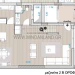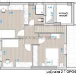 Στον 1ο όροφο 76τ.μ αναπτύσσονται οι κοινόχρηστοι χώροι της κατοικίας σαλόνι, τραπεζαρία, κουζίνα με αποθήκη, μπάνιο και μεγάλες βεράντες. Στον 2ο όροφο 62τ.μ. αναπτύσσονται 3 υπνοδωμάτια με βεράντες και ένα μπάνιο.