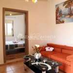 Frontage, corner, fully furnished and electrically equipped, 2-room studio, 30 sq.m., ground floor. It has a single living room – kitchen, separate bedroom, bathroom, solar water heater, PPC meter, air conditioning, internet, common yard, parking, garden, semi-outdoor spaces. No pets accepted. No utilities. Unrestricted mountain view, sea. Rent price 350 euros.