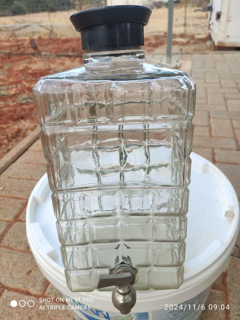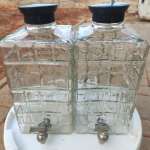Δύο γυάλινα δοχεία με βρυσάκι που λειτουργεί χωρίς απώλεια. 50 ετών συν. Στις φωτογραφίες φαίνεται η άριστη κατάσταση τους.