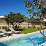 Fully furnished and electrically equipped (also with washer-dryer of clothes and dishwashers, TV) newly built maisonette-villa of luxurious construction of 200 sq.m. It has an open plan living room-kitchen, 4 bedrooms, 4 bathrooms with showers, office, 2 attics, heat pump, air conditioning in all areas, fireplace, electric and solar water heater, autonomous PPC clock, internet, large terrace, courtyard with garden of fruit trees and vineyard of 7.5 acres, barbeque, 3 swimming pools (one heated). It is given only for short-term rental. No pets. EPC A. Rent price 1400 euros.
