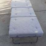 Μεταχειρισμένο με μεταλλικό σκελετό και με πλενόμενο μπεζ κάλυμμα. Σε καλή κατάσταση. Διαστάσεις σκαμπό: 80x80x50εκ, διαστάσεις κρεβατιού: 200x80x50εκ. Τιμή: 100€/τμχ. Η τιμή δεν περιλαμβάνει φπα 24% και μεταφορικά