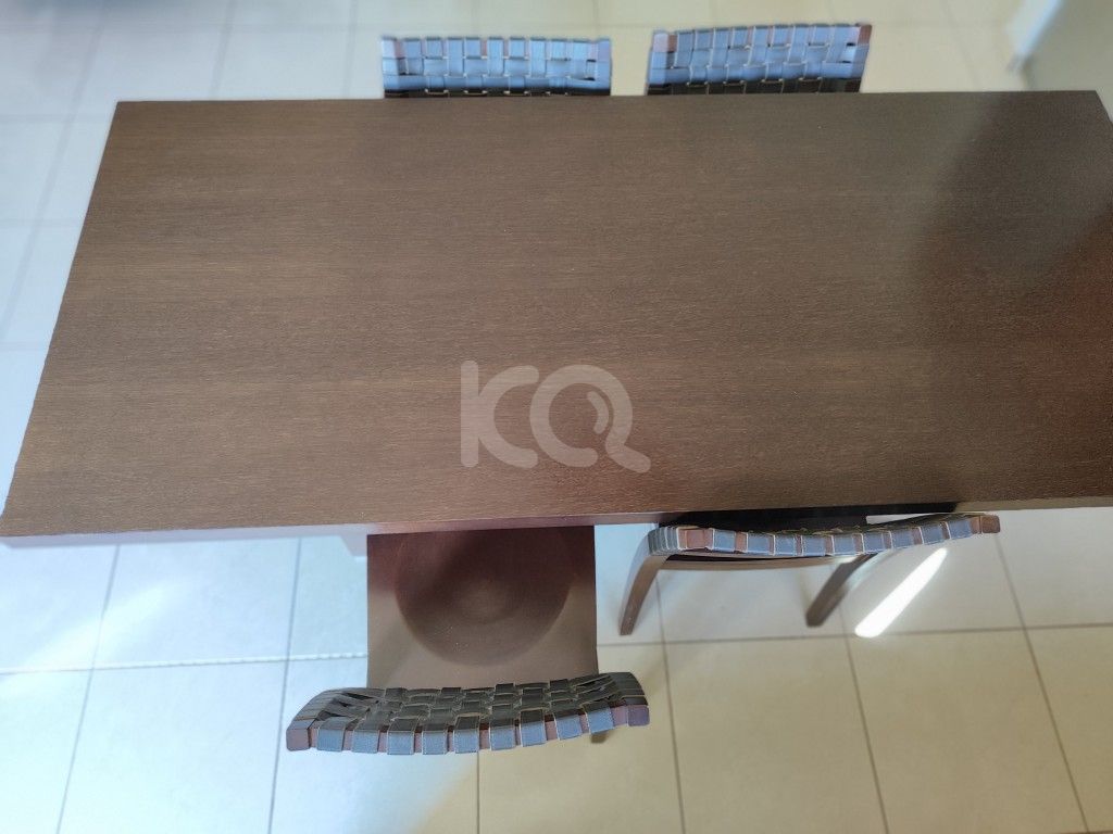 Σετ Τραπέζι Bolivar (200x90x75h) με 4 Καρέκλες Wave. Πρόκειται για μία εξαιρετικά κομψή σύνθεση από μασίφ ξύλο οξιάς, όπου οι καρέκλες διαθέτουν χειροποίητη δερμάτινη πλέξη στην πλάτη. Το σετ βρίσκεται σε άριστη κατάσταση με ελάχιστη χρήση. Η τιμή αγοράς του ήταν €2.200, και είναι ιδανικό για όσους αναζητούν την υψηλή ποιότητα και την αξία της ΝΕΟ ΚΑΤΟΙΚΕΙΝ στο χώρο τους.
