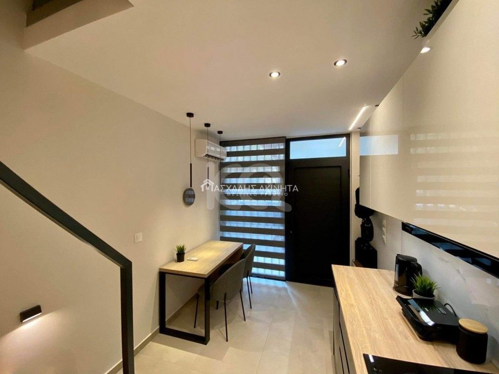 Newly built, fully furnished and electrically equipped (with 2 TVs) studio-maisonette, luxury, ground floor 40 sq.m. It has an open plan living room-kitchen, 2 offices, 1 bedroom, 1 bathroom with shower, 2 air conditioners, autonomous PPC clock, energy frames, shading shutters, screens, security camera, internal staircase, own independent entrance, parking, without shared expenses. SMO B+. Sale price 128.000 euros.