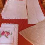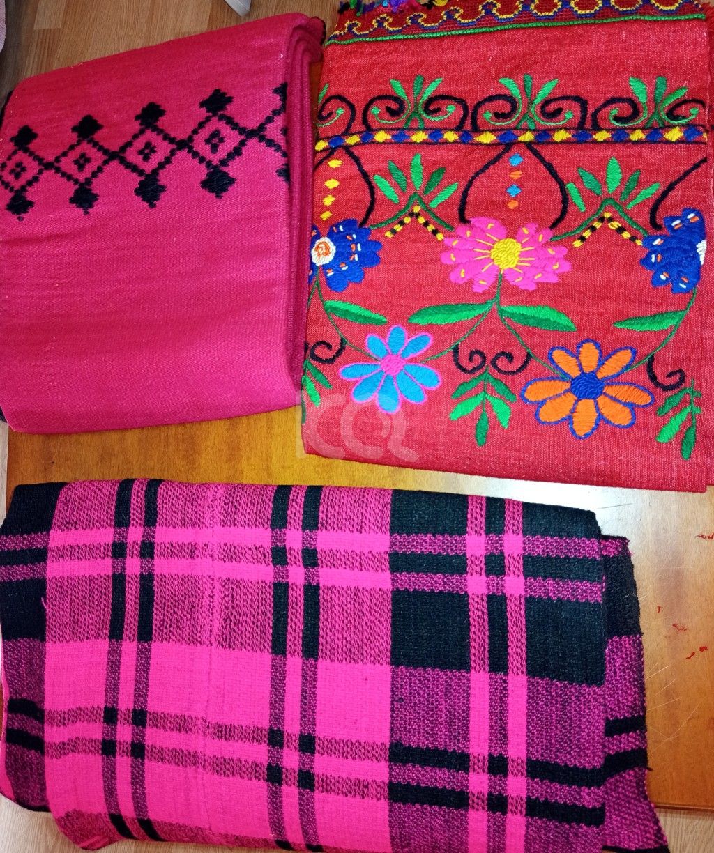Διάφορα χειροποίητα υφαντά σε πολλά σχέδια και χρώματα. Όπως επίσης, πλεκτές κουβέρτες και τραπεζομάντηλα με βελονάκι, σεμέν και τραπεζοκαρε.