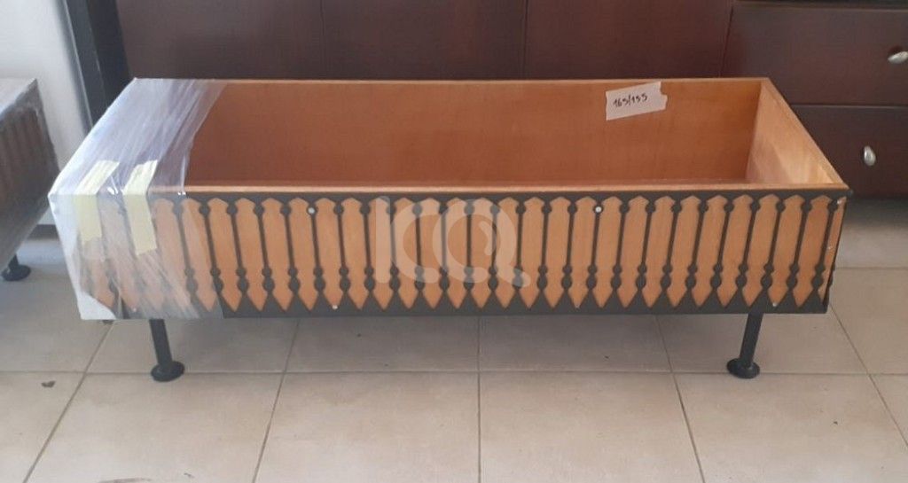 Καινούρια ζαρντινιέρα, ξύλινη με πλαστικά πόδια και μεταλλικά σχέδια. Σε άριστη κατάσταση. Διαστάσεις: 105x40x36εκ. Η τιμή δεν περιλαμβάνει φπα 24% και μεταφορικά