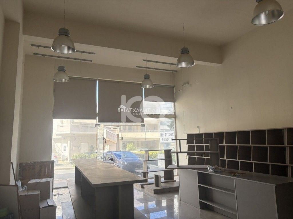 Ground floor store of 115 sq.m. It has wc, kitchenette, air conditioning, three-phase PPC clock, backyard with garden. Parking may also be provided. SMO D. Rental price 1500 euros.