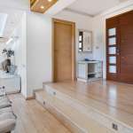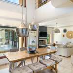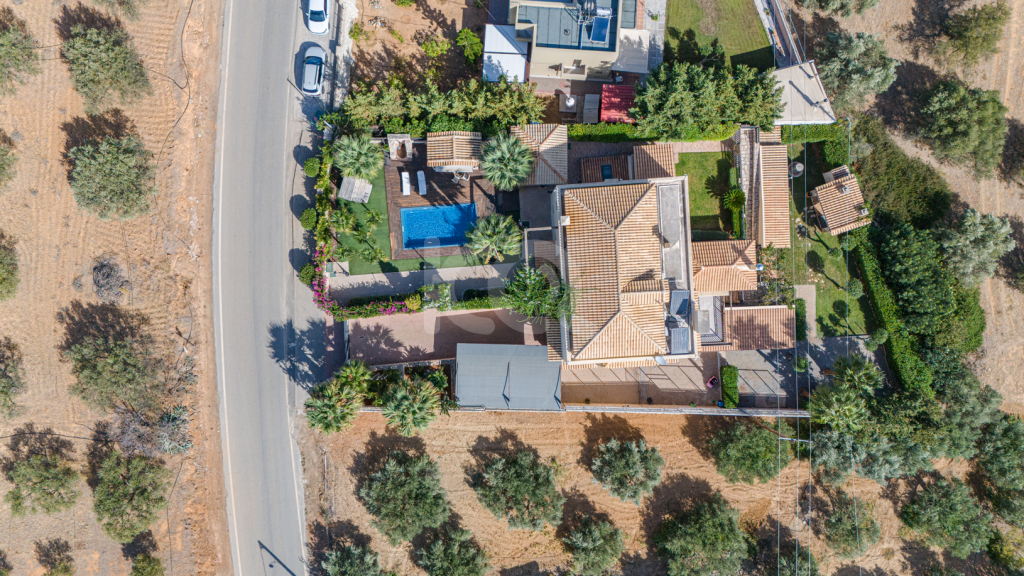 Ισόγειο: Το ισόγειο περιλαμβάνει έναν ευρύχωρο ενιαίο χώρο με σαλόνι και τζάκι, τραπεζαρία, open plan κουζίνα, 1 master υπνοδωμάτιο με ιδιωτικό μπάνιο, laundry room και μεγάλη τροφιμαποθήκη. Στον εξωτερικό χώρο υπάρχει γραφείο με τζάκι, εξωτερική κουζίνα, χώρος BBQ και ξυλόφουρνος κάτω από πέργκολα, καθώς και δύο μεγάλες βεράντες με ηλεκτρικές τέντες.