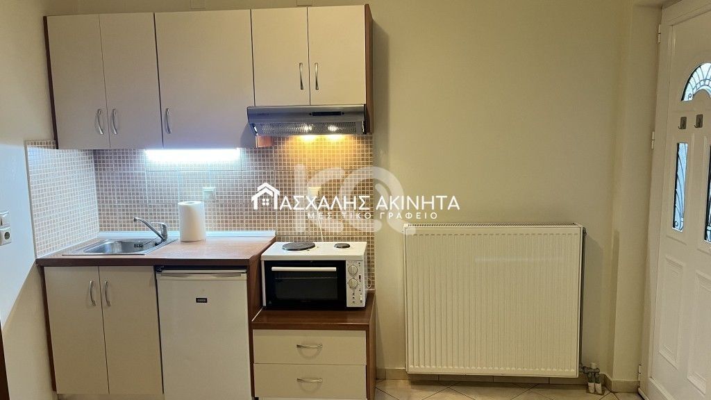 Furnished and electrically equipped, 1-room studio, ground floor, 25 sq.m. It has a single living room – kitchen – bedroom, bathroom, air conditioning, electric water heater, independent PPC clock, yard. No pets. PEA E. Ideal for a student. Rent price 330 euros.