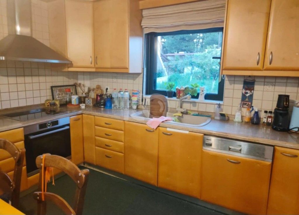 Αποτελείται από ισόγειο που είναι η κουζίνα, με πάγκο από γρανίτη, το καθιστικό με μεγάλο τζάκι, το σαλόνι και μεγάλο μπαλκόνι έχει πέργκολα με σκίαση.