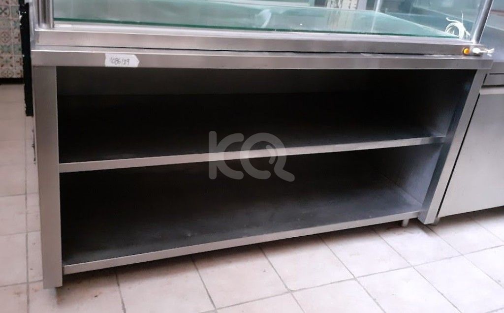 Μεταχειρισμένος, ανοξείδωτος πάγκος ερμάριο, κλειστός από τις 3 πλευρές και ένα ράφι στο εσωτερικό του. 170x75x90εκ. Η τιμή δεν περιλαμβάνει ΦΠΑ 24% και μεταφορικά.