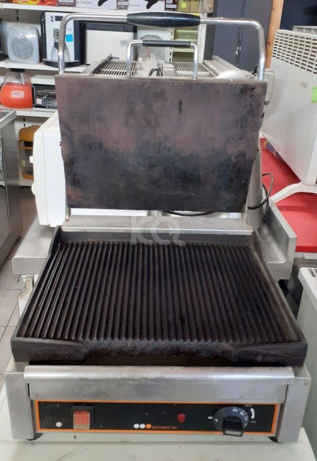 μεταχειρισμένη, επαγγελματική τοστιέρα, Karamco SP02355, 2400W, με λεία και ραβδωτή μαντεμένια πλάκα. Σε καλή κατάσταση. Διαστάσεις: 41x38x21εκ. Η τιμή δεν περιλαμβάνει φπα 24% και μεταφορικά
