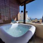 Διαθέτει την εικονιζόμενη επίπλωση, τις ηλεκτρικές συσκευές, κλιματισμό και βεράντα στον οντά με τζακούζι και θέα θάλασσα.