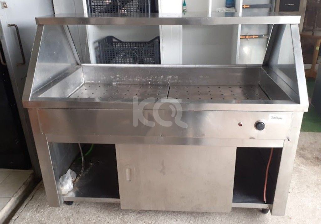 Μεταχειρισμένο μπαίν μαρί επιδαπέδιο, με θέση για 4 γαστρονόμους 1/1 και χώρο για αποθήκευση. Σε καλή κατάσταση. Διαστάσεις: 150x80x125εκ. Η τιμή δεν περιλαμβάνει φπα 24% και μεταφορικά