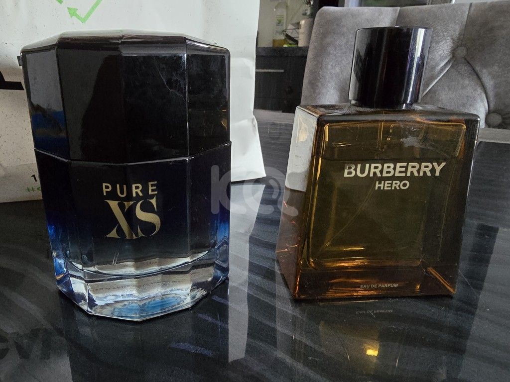 2 ξεχωριστές κολόνιες PURE XS έχει απομείνει το 85% 100 ML στα 40 ευρώ και BERBERRY HERO στο 85% έχει απομείνει στα στα 40 ευρώ 100 ML.