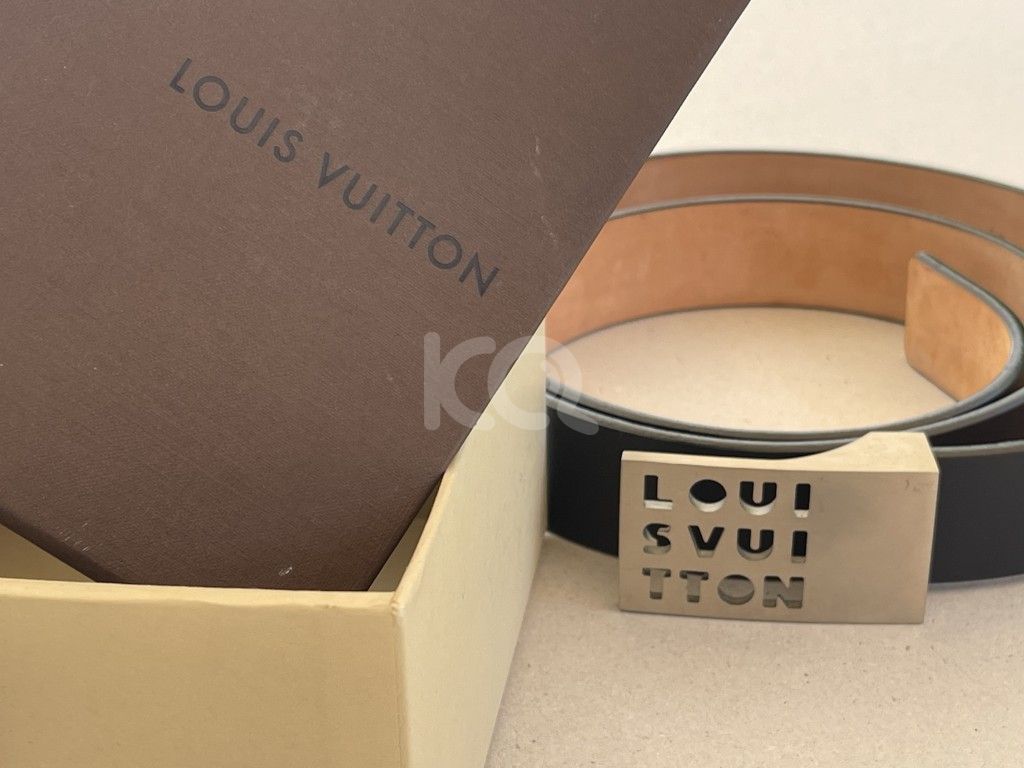 Αυθεντική μαύρη δερμάτινη ανδρική ζώνη Louis Vuitton με το κουτί της. Σχεδόν τέλεια κατάσταση (ελάχιστα μεταχειρισμένη). Size: 95/38. Suntulle/Belt/Leather/BLK/Men's/LB0033