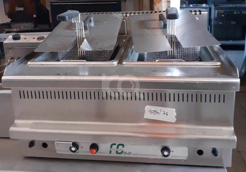 Μεταχειρισμένη φριτέζα υγραερίου, διπλή, VISVARDIS FG 15+15 λίτρων. Σε πολύ καλή κατάσταση. Διαστάσεις: 75x70x45εκ. Η τιμή δεν περιλαμβάνει φπα 24% και μεταφορικά
