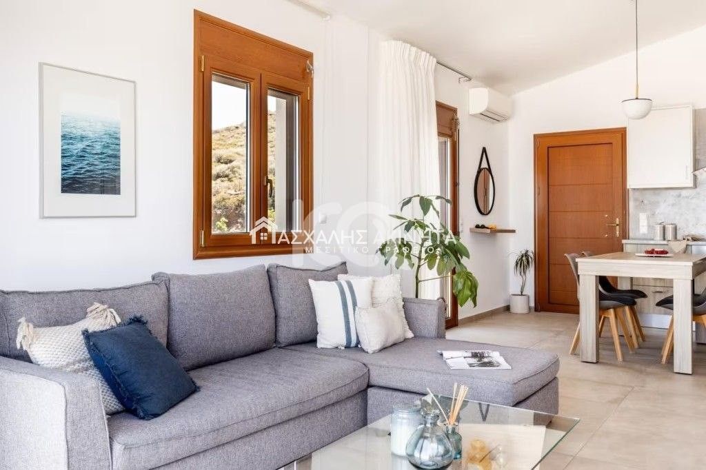 Fully furnished and electrically equipped 3-room 2nd floor apartment 75 sqm. It has a single living-kitchen area, 2 bedrooms, 1 bathroom with shower, air conditioning, solar and boiler, PPC meter, terraces 80 sq.m. yard with garden, lawn around the pool area 180 sq.m., aluminum pergola area 20.00 sq.m. in the lawn area, parking, swimming pool 23 sq.m., unlimited sea view. No pets. PEA G. Rent price 1450 euros.