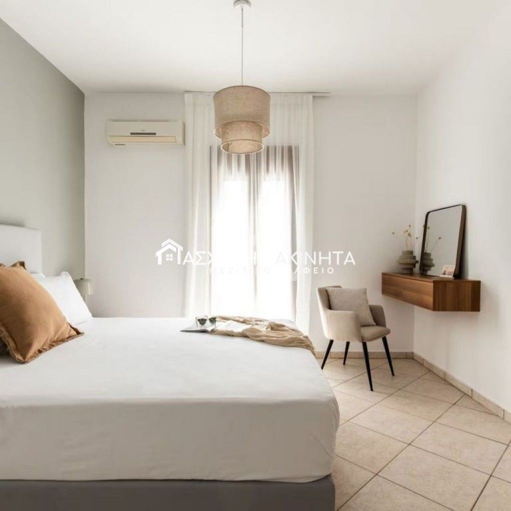 Πλήρως επιπλωμένο και ηλεκτρικά εξοπλισμένο 4άρι διαμέρισμα ισογείου 133 τ.μ. Διαθέτει ενιαίο χώρο σαλο-κουζίνα, 3 υ/δ (το 1 ειναι master bedroom με δικό του λουτρό) και 1 επιπλέον λουτρό με ντουζιέρα, ενεργειακό τζάκι, κλιματισμό, ηλιακό και boiler, μετρητή ΔΕΗ, βεράντες 50 τ.μ. αυλή με κήπο, αποθήκες, barbeque, parking, πισίνα 23 τ.μ., απεριόριστη θέα θάλασσα. Όχι κατοικίδια. ΠΕΑ Γ. Τιμη συζητήσιμη.