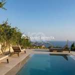 Fully furnished and electrically equipped 4-room ground floor apartment 133 sq.m. It has a single living-kitchen area, 3 bedrooms (1 is master bedroom with its own bathroom) and 1 additional bathroom with shower, energy fireplace, air conditioning, solar and boiler, PPC meter, terraces 50 sqm yard with garden, storage rooms, barbeque, parking, swimming pool 23 sqm, unlimited sea view. No pets. PEA G. Price negotiable.