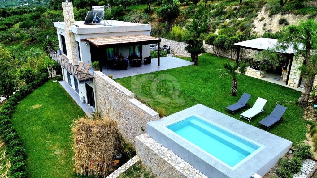 Ηράκλειο, Άγιος Μύρωνας. Ενοικιάζεται μοναδική βίλα 170 τμ σε οικόπεδο 2.200 τμ με ιδιωτική θερμαινόμενη πισίνα, τζακούζι και ανεμπόδιστη θέα. Συγκεκριμένα, είναι διαμορφωμένη σε δύο επίπεδα, πλήρως επιπλωμένη και ηλεκτρικά εξοπλισμένη και προσφέρει ενιαίο χώρο με σαλόνι με τζάκι και smart TV home cinema, τραπεζαρία και κουζίνα με εστίες υγραερίου, τέσσερα υπνοδωμάτια, ένα μπάνιο με υδρομασάζ και ένα WC. Στον εξωτερικό χώρο, ο οποίος είναι πολύ όμορφα διαμορφωμένος με γκαζόν, δέντρα και φυτά, διαθέτει μπάρμπεκιου με ψησταριά, υπαίθρια τραπεζαρία, ξυλόφουρνο και εξωτερική τουαλέτα. Επιπλέον, το ακίνητο αποτελεί μια αντισεισμική κατασκευή εξοπλισμένη με θερμομόνωση και ενεργειακά κουφώματα. Τέλος, περιλαμβάνει αυτόνομη θέρμανση με κλιματιστικά και πετρέλαιο, όργανα γυμναστικής, ίντερνετ και άνετες θέσεις στάθμευσης. Είναι διαθέσιμη τόσο για μακροχρόνια μίσθωση, όσο και για βραχυχρόνια. Αποτελεί μία άριστη επιλογή, καθώς συνδυάζει την ηρεμία της περιοχής με την άμεση πρόσβαση στην πόλη του Ηρακλείου.