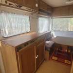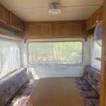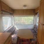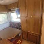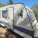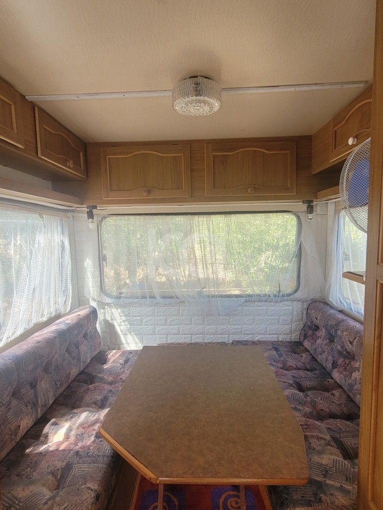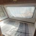 Adria μήκους 5μ., έχει 2 δίπλα κρεβάτια, κουζίνα, ψυγείο και μπάνιο. Τα παράθυρα είναι όλα διπλά και ανοιγόμενα.