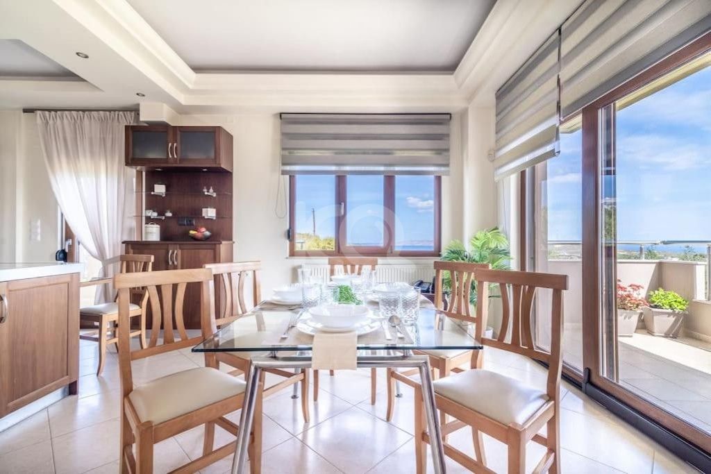 ΑΓΙΟΣ ΡΩΜΑΝΟΣ-ΕΛΙΑ (10 λεπτά απόσταση από την πόλη του Ηρακλείου) Καινούριο, υπερπολυτελές, αυτόνομο, πλήρως επιπλωμένο ισόγειο διαμέρισμα, (από την ανατολική, βόρεια και δυτική πλευρά είναι πρώτος όροφος) εμβαδού 130 τ.μ., μέσα σε περιφραγμένο οικόπεδο εν μέρει με ελαιόδεντρα, εμβαδού 3.200 τ.μ., το οποίο αποτελείται από μεγάλο ενιαίο χώρο κουζίνα-σαλόνι-τραπεζαρία, 3 άνετα υπνοδωμάτια με μεγάλες ντουλάπες και κρεβάτια κομοδίνα, γραφείο, λουτρό με γωνιακή μεγάλη ντουζιέρα, αποθήκη, μεγάλη βεράντα με τραπεζαρία και καρέκλες, μεγάλα μπαλκόνια με τέντες, τραπέζι κουζίνας με καρέκλες, τραπεζαρία με καρέκλες, μεγάλους καναπέδες με τραπεζάκι, μπουφές με καθρέπτη, πολλά βοηθητικά έπιπλα, τηλεόραση, ψυγείο, φούρνος με εστίες, πλυντήριο πιάτων, πλυντήριο ρούχων, καινούργια ενεργειακά κουφώματα με σήτες και ρολά, κουρτίνες, στόρια, γυψοσανίδες οροφής με κρυφούς φωτισμούς, φωτιστικά, δάπεδο πλακάκι, αυτόνομη θέρμανση με πετρέλαιο, κλιματισμό, ηλιακό θερμοσίφωνο, δικό του ρολόι ΔΕΗ, πολλούς χώρους στάθμευσης, 2 χλμ. περίπου από την παραλία, σε ύψωμα, καινούργιες πολυτελής κατοικίες πλησίον, ήσυχη γειτονιά, πράσινο περιβάλλον, πανέμορφη, ανεμπόδιστη, πανοραμική θέα θάλασσα. Π.Ε.Α= Κατηγορία Α. Δεν επιτρέπονται τα κατοικίδια. Διατίθεται για μόνιμη μακροχρόνια μίσθωση. Διαθέσιμο από 1 Οκτωβρίου 2025. Αποκλειστική ανάθεση. Ενοίκιο 1.000 €.