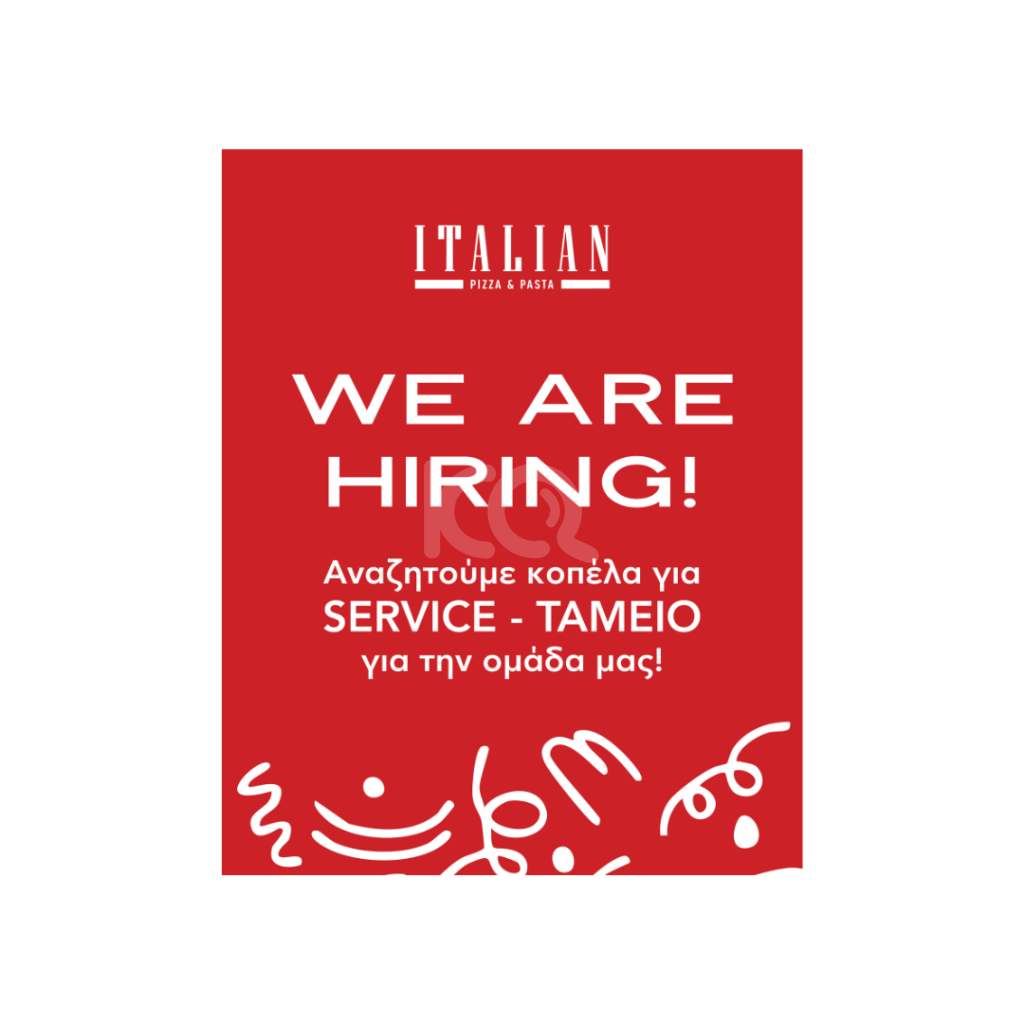 άτομο ζητείται από το κατάστημα "Italian Pizza & Pasta" στο κέντρο του Ηρακλείου. Απαραίτητη η προϋπηρεσία. Αποστολή βιογραφικού στο mail & πληροφορίες στο τηλέφωνο επικοινωνίας.