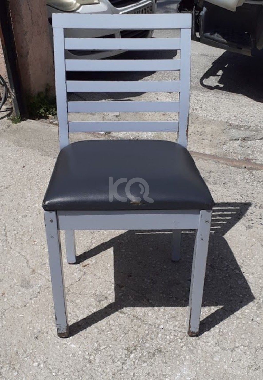 Μεταχειρισμένες καρέκλες, εσωτερικού και εξωτερικού χώρου, με ξύλινο σκελετό και κάθισμα δερματίνης. Σε καλή κατάσταση. Τιμή: 10€/τμχ. Η τιμή δεν περιλαμβάνει φάπα 24% και μεταφορικά