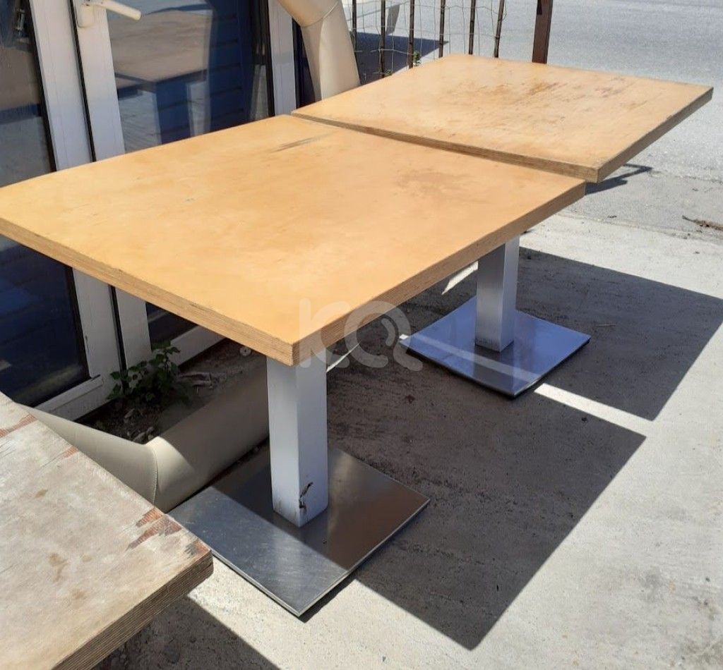 Μεταχειρισμένο τραπέζι ξύλινο, εξωτερικού και εσωτερικού χώρου, με μεταλλική βάση. Σε καλή κατάσταση. Διαστάσεις: 80x80x76εκ. Τιμή: 50€/τμχ.Η τιμή δεν περιλαμβάνει φπα 24% και μεταφορικά