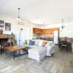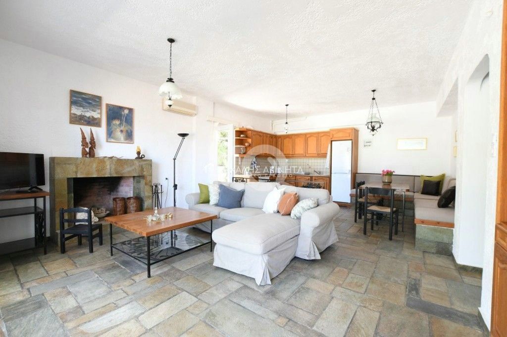 Furnished and electrically equipped, renovated 3-room ground floor apartment 77 sq.m. It has a single living room-kitchen area, 2 bedrooms, 1 bathroom, fireplace, air conditioning in every area, solar, autonomous PPC clock (with intermediate meter) and photovoltaics, internet, loft, terrace, balcony, yard with garden, semi-outdoor areas, swimming pool, sea view, parking. Pets accepted. PEA G. Rent price 1150 euros negotiable.