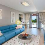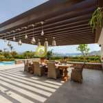 ELOUNDA VILLA HELEN : This magnificent spacious villa benefits from wonderful sea and mountains view . The mansion comprises a living room with dining area , leading to a large terrace facing the sea , a fuly equipped kitchen , 5 bedrooms , each with an en suite bathroom and an access to the pool area or terrace . Relaxing spacious outdoor area is ideal for sunbathing by the large swimming poolwith its fresh water , from wich a spectacular panoramic view opens in front of spectator . A footpath
