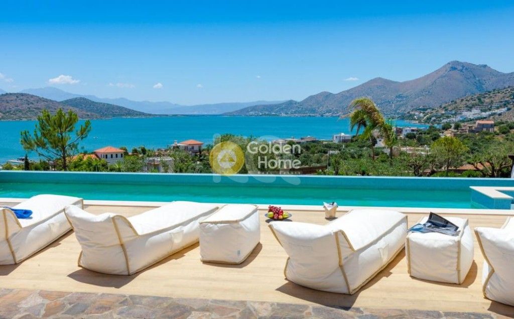 ELOUNDA VILLA SOFIA : Beautifull villa characterized by an outstanding seafront position , impressive views over the sea and coastline of Mirabello bay . The property features a living room that opens onto spacious outdoor dining and lounge areas : large full height windows are perfect to linger over panoramic vistas and breathtaking sunset. All four bedrooms with en-suite bathroom have alluring sea views and direct access to patios and verandas . This charming house suits perfectly to those who